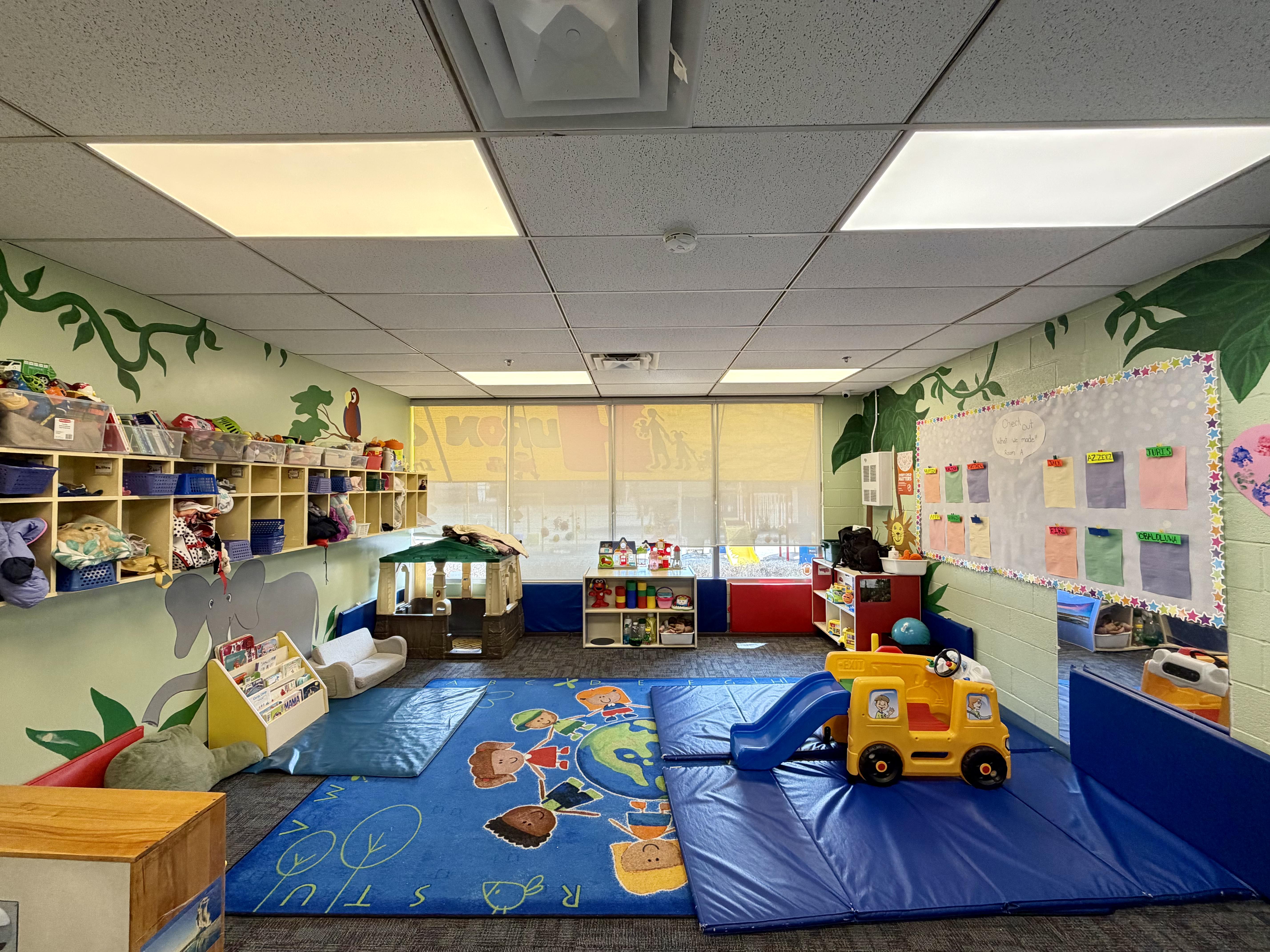 Crucial for physical development year round, our expansive indoor gym offers a safe space for active play. It transitions into a calming sensory room equipped with tactile tools and soothing activities, helping children build focus and emotional regulation in a nurturing environment.